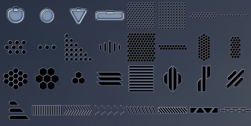You'll get 200 high quality detailing decals ready to use with Decal Machine in Blender 2.8+
