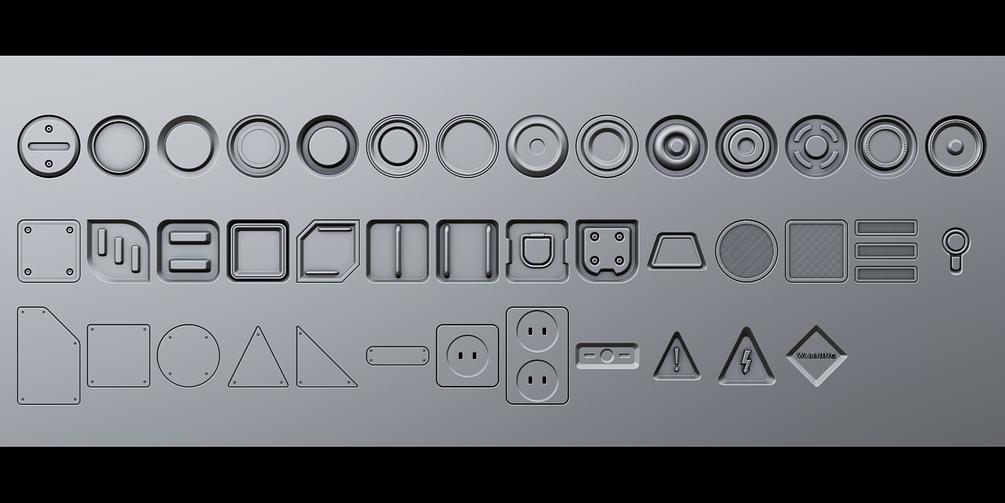 This pack contains 40 perfect shaded Decals that you can use on any of your models to add details without adding geometry.
